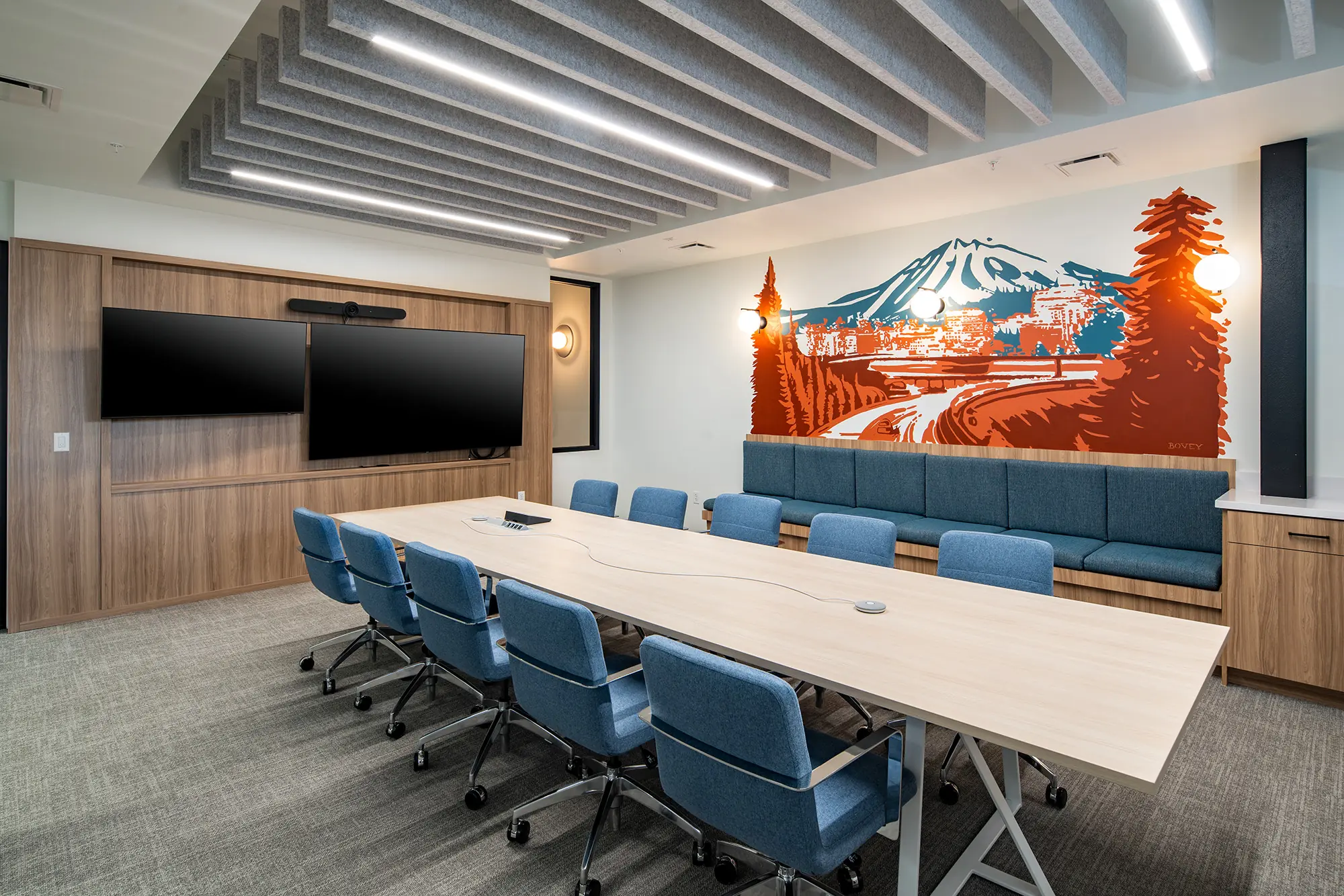 The project entails a comprehensive demolition of the existing level 5 and level 6 floor plans to integrate a new 20,000 square foot tenant improvement for Coffman Engineers. A significant portion of the floor plan has been strategically organized to offer striking views of Riverfront Park for employees from their workstations. Special attention has been given to ergonomic design and sustainable materials throughout the space, ensuring a comfortable and eco-friendly work environment for Coffman Engineers’ staff. Furthermore, the project incorporates state-of-the-art technology infrastructure to support communication and collaboration needs, fostering efficiency and innovation within the workplace.