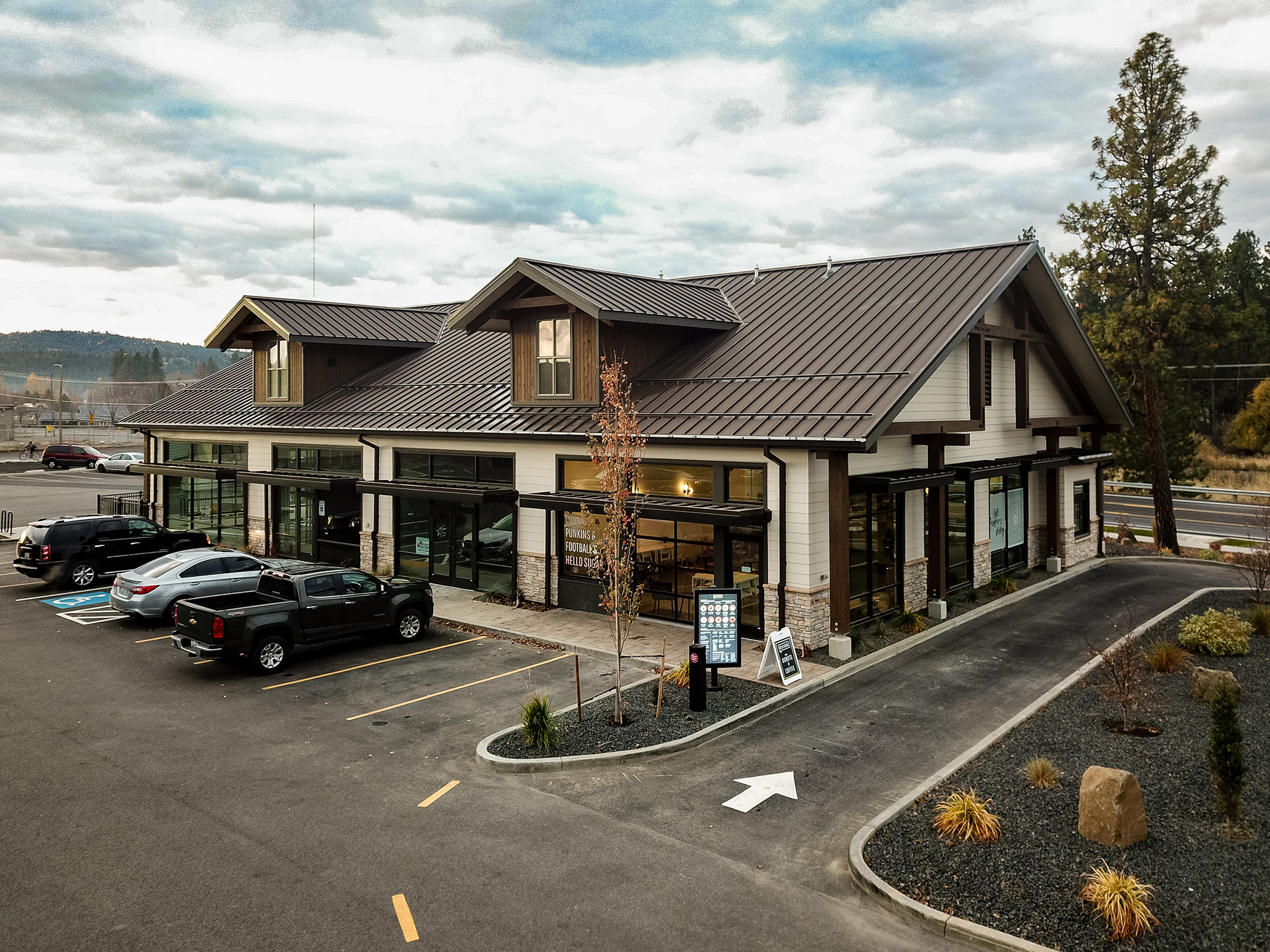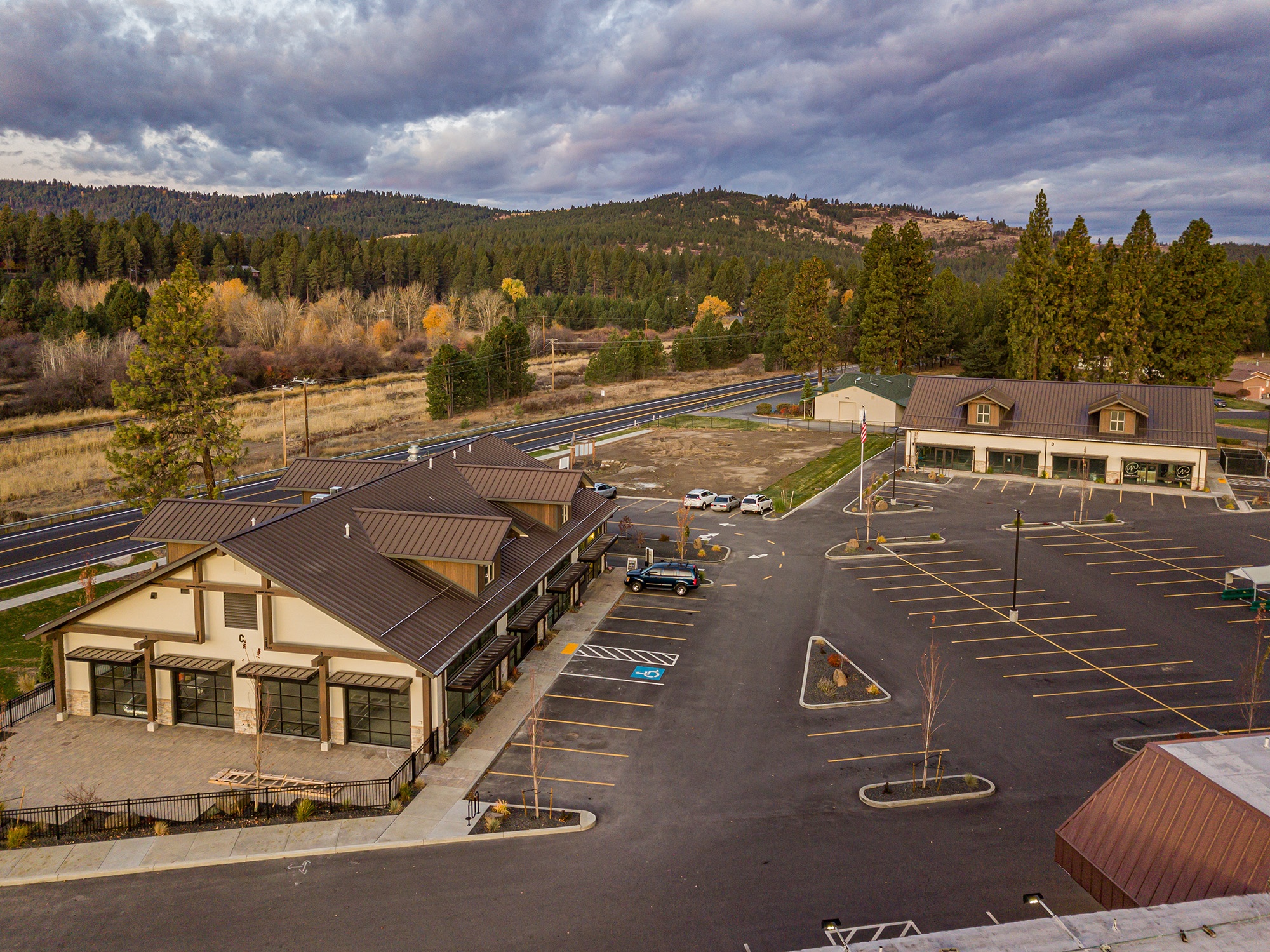 Fusion Architecture was hired by the owners of Barney’s Harvest Foods to complete a master plan study for their six acres of property surrounding their store for the addition of retail buildings. Fusion’s master plan design included six retail stores ranging in size from five thousand square feet to eight thousand square feet and parking. Following the study, Fusion was hired to complete construction drawings for the first two of the six retail buildings. The buildings were completed in 2019 and are at 100% occupancy. Fusion Architecture was also the architect of record for three of the four tenant build outs for tenants such as Hello Sugar, The Mix Hair Salon and Ponderosa Grille.