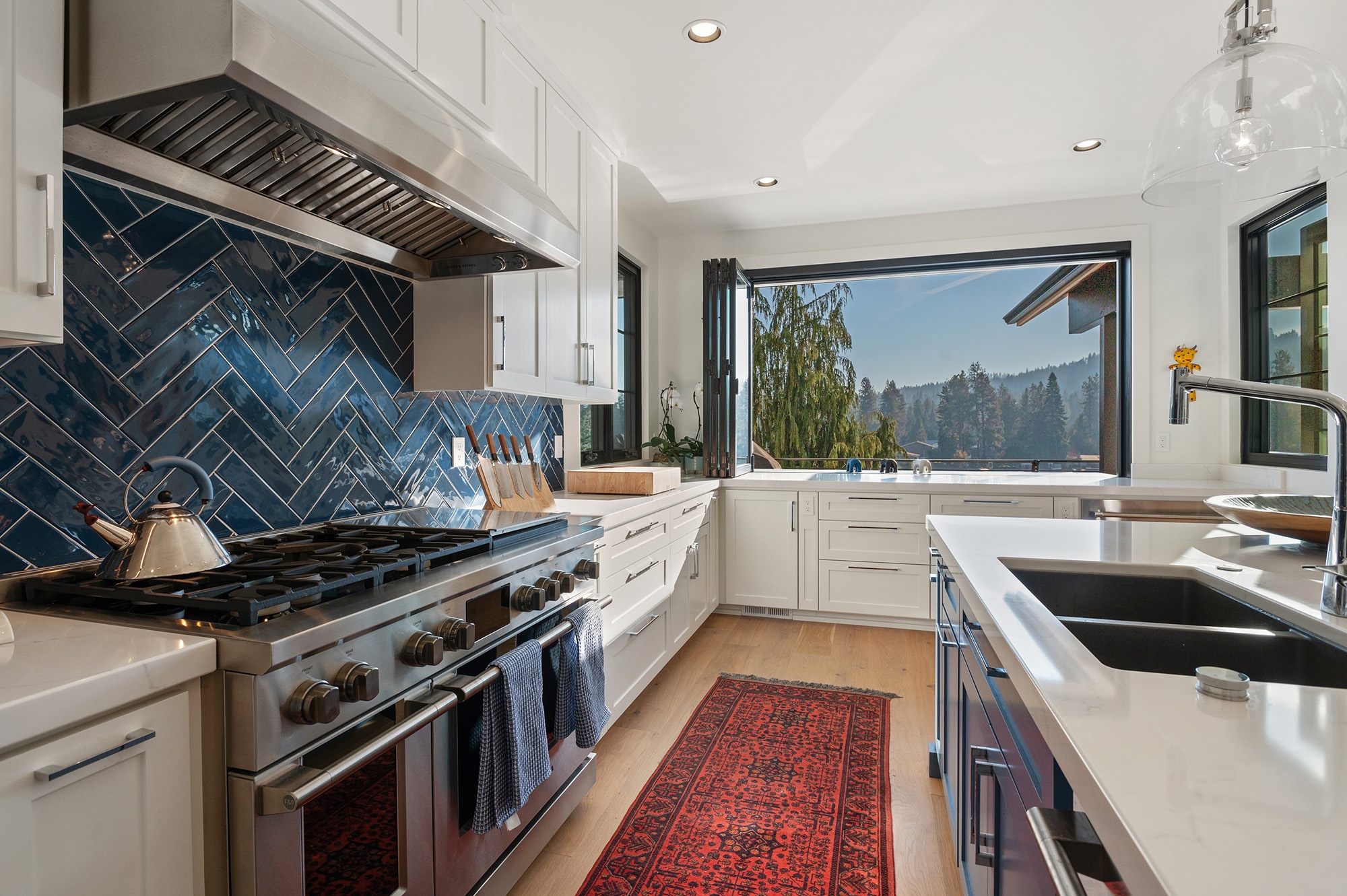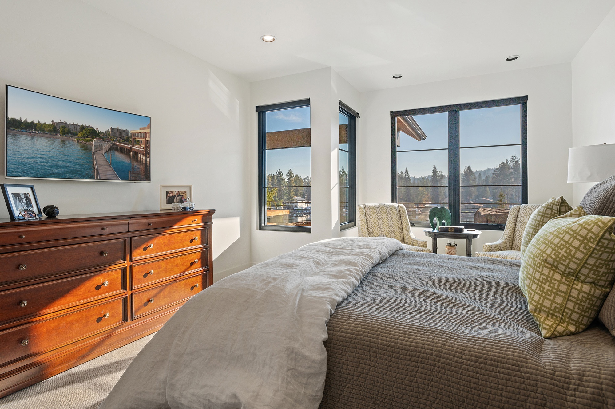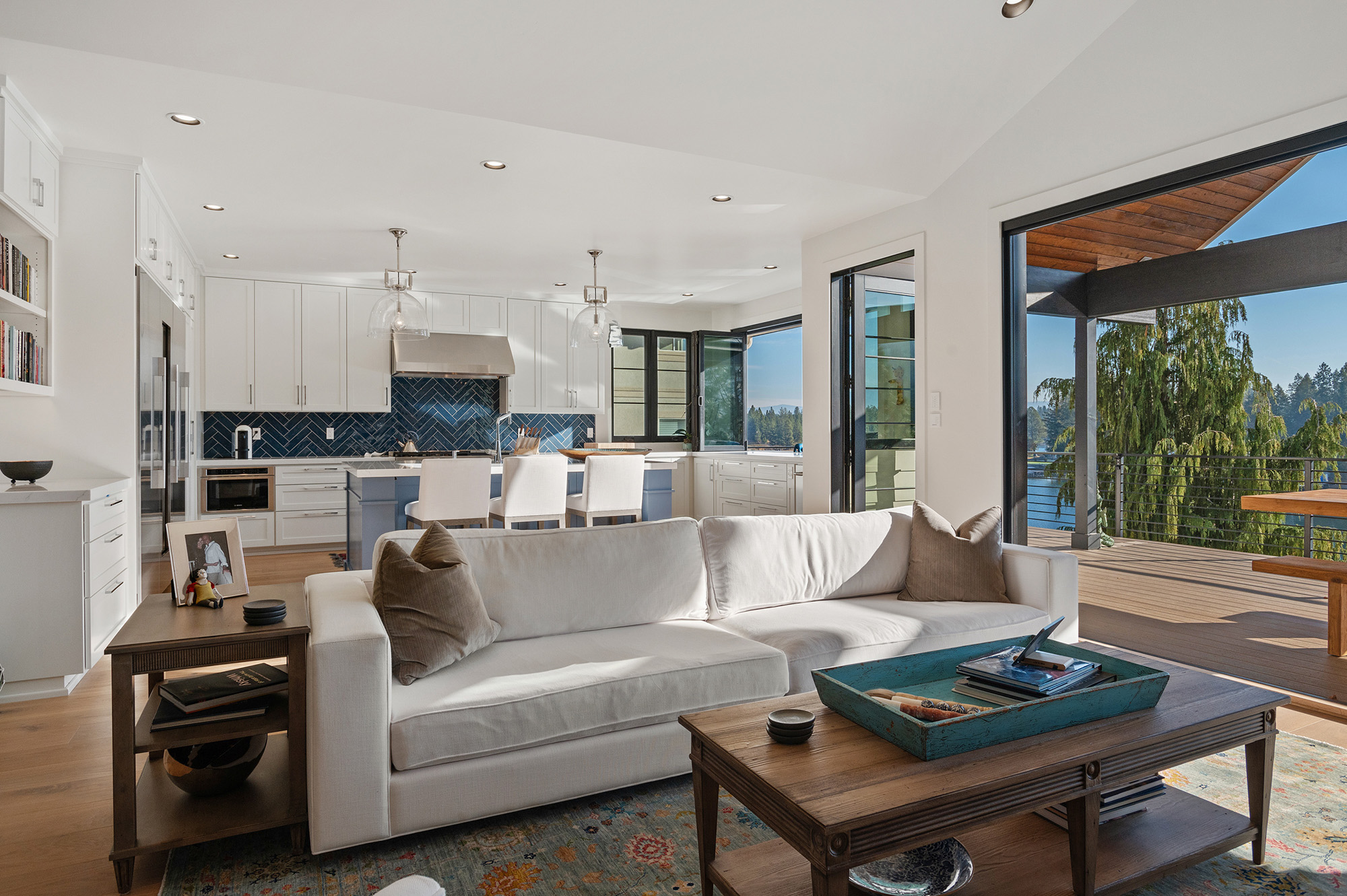 Remodel project for a two-story home in Post Falls, Idaho. The existing house was a 3,000 ft² two-story, walk-out basement style house. The remodel design included the expansion of the existing deck including a covered porch overlooking the Spokane River at the back of the house.
