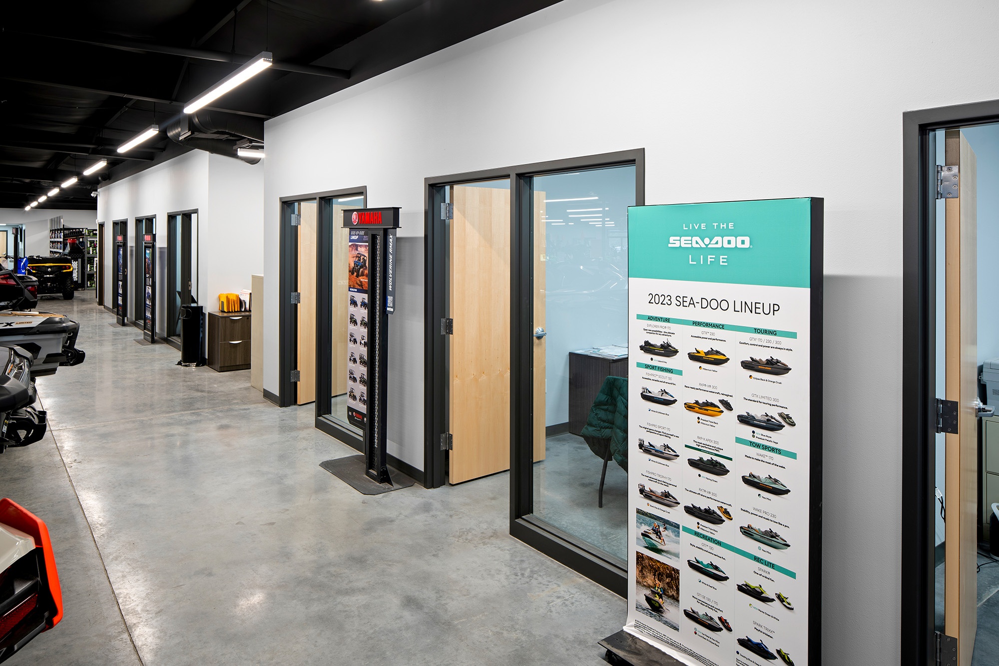 The Westside Motorsports interior renovation reconfigures and upgrades the dealership to better serve both staff and customers. The scope included demolition of existing partitions, a remodeled retail floor, and the addition of nine offices with an adjacent administrative area. New employee and public restrooms, along with a redesigned breakroom, create a more functional and comfortable environment that aligns with the pace and demands of the business.